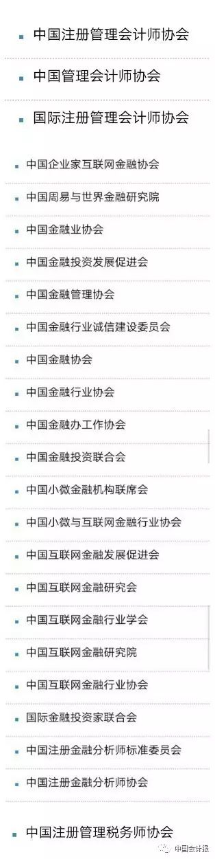 對于會計朋友們關(guān)心的財會、稅務(wù)、金融和互聯(lián)網(wǎng)等領(lǐng)域,小編從民政部截至目前公布的“離岸社團(tuán)”“山寨社團(tuán)”名單中找到了這些: